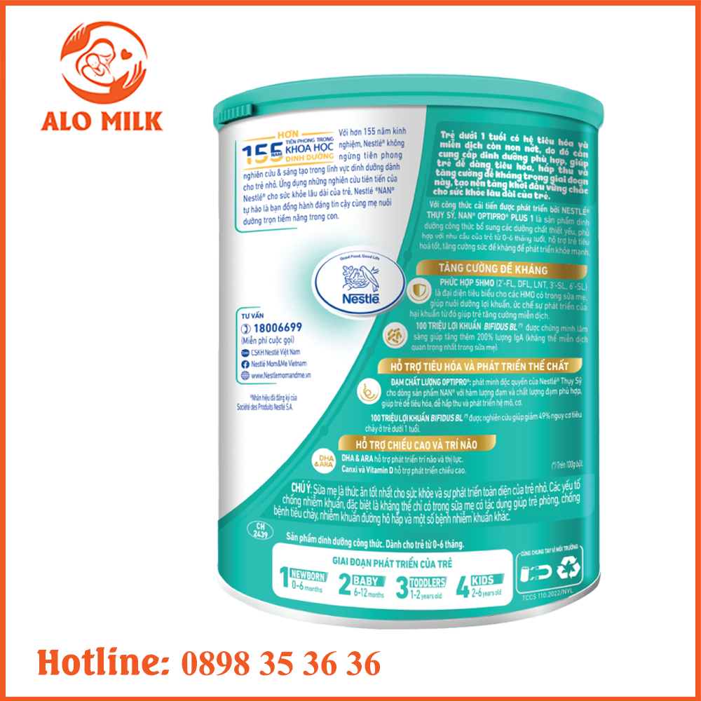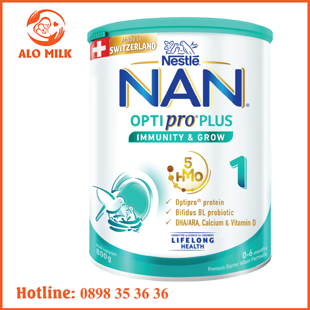 Sữa Nan Optipro Plus số 1 5HMO 800g cho bé 0-6 tháng tuổi phát triển toàn diện cho bé